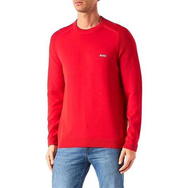 BOSS Gents Ronard Organic-Cotton Logo Sweater Medium Red